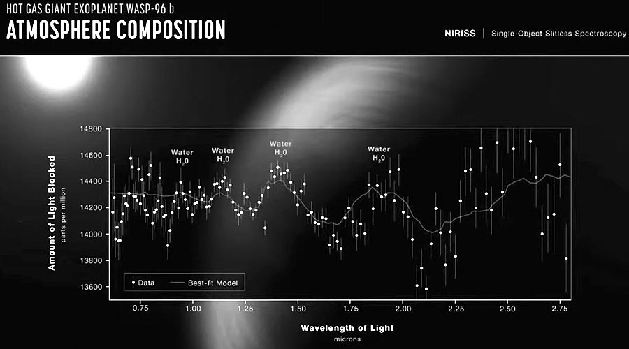 Таким образом исключая из спектра свет звезды, ученые получили спектр атмосферы WASP-39 b, в котором разные газы по-разному поглощают свет. А на основе анализа отличий в спектре можно определить, из чего состоит атмосфера.