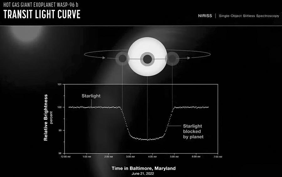 Прохождение планеты перед звездой ученые также используют для изучения планетарной атмосферы. Проходя перед звездой WASP-39 b перекрывает её свет не полностью, часть его проходит через атмосферу планеты.